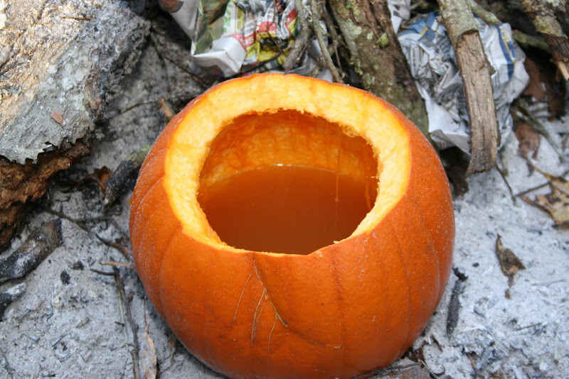 You’ll have to watch the pumpkin and keep it turned to make sure it cooks evenly. Plus, the temperature of the fire can fluctuate and you’ll need to keep feeding it wood throughout the day (did I mention this is an all day process), so don’t plan on wandering too far away from your campfire.
